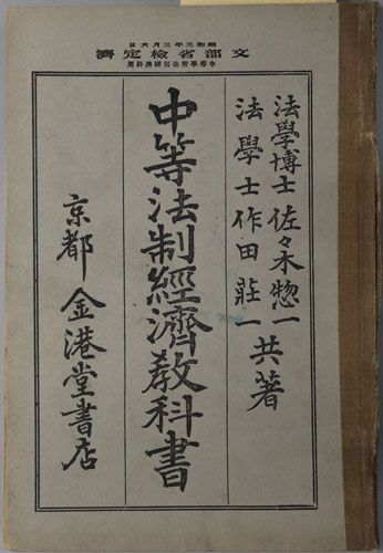 法制経済新教科書 大正11年2月23日文部省検定済